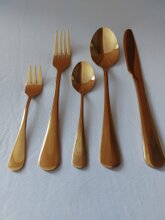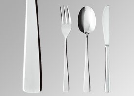 Modernes schlankes Besteck in gradlinigem Design. Hochglanzpoliert und Spülmaschinengeeignet.